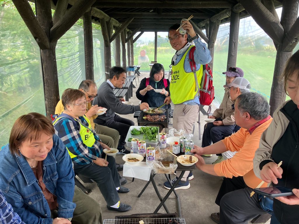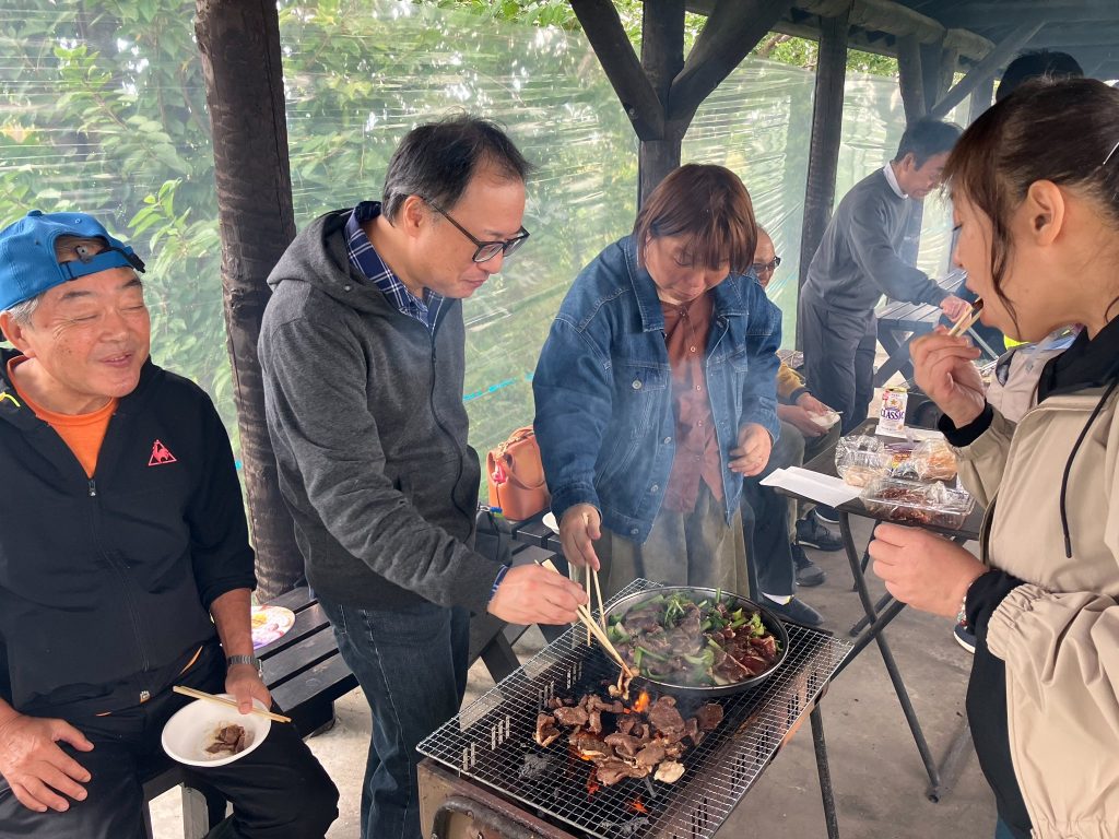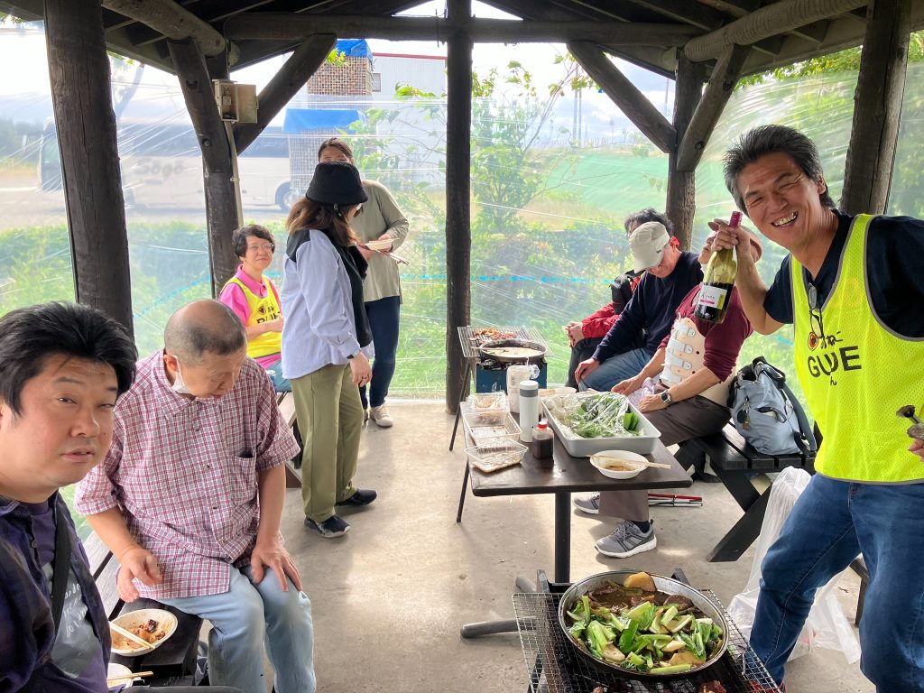 余湖農園のバーベキューにご満悦の皆さん