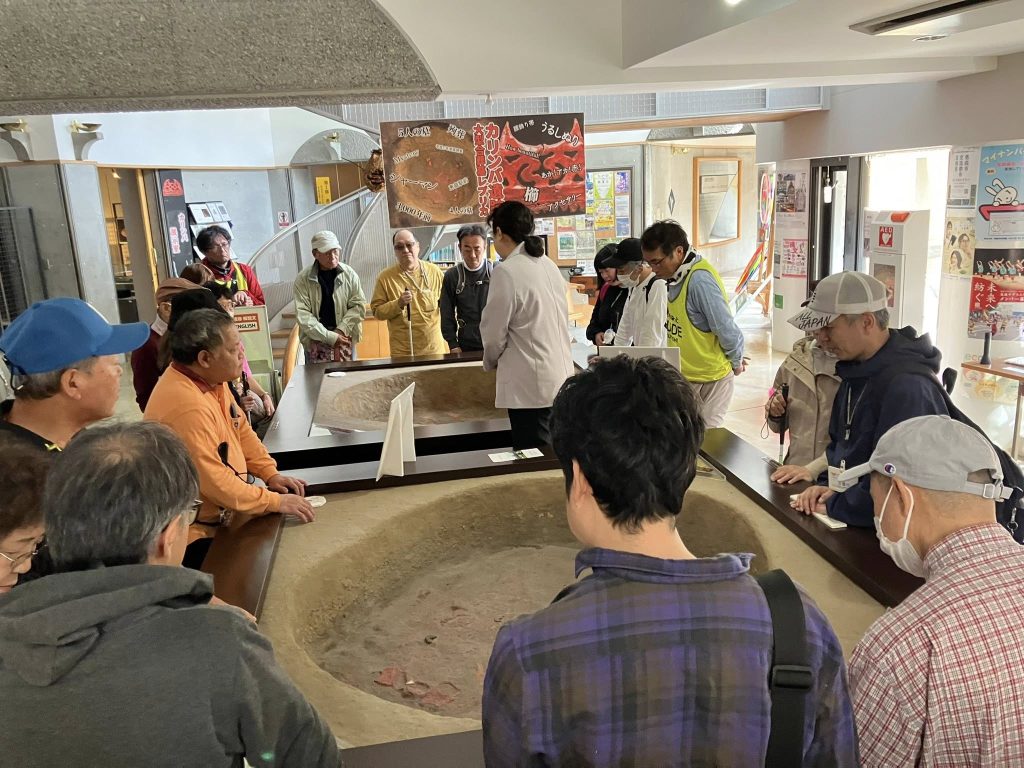 カリンバ遺跡から発掘された重要文化財の漆塗りの櫛や装身具などの重要文化財や、南国にしかいないはずのサメの歯が埋葬品として発掘されたこと、縄文時代やアイヌモシリの生活跡、恵庭市の歴史や自然について、大林学芸員さんの丁寧で熱心な説明に、参加者全員が熱心に耳を傾け「近くにこんな良いところがあったんだ!」と喜んでいただきました。